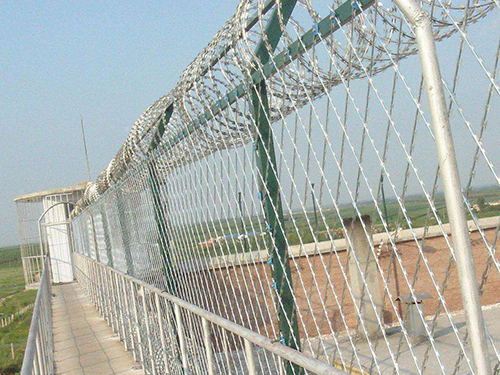 監(jiān)獄刀刺隔離網(wǎng)又名刀片刺繩隔離網(wǎng)、刀刺防護網(wǎng)。監(jiān)獄刀片隔離網(wǎng)是一種新型防護網(wǎng)。該產(chǎn)品具有嚇阻效果好.美觀.施工便利.經(jīng)濟實用等優(yōu)異特點。