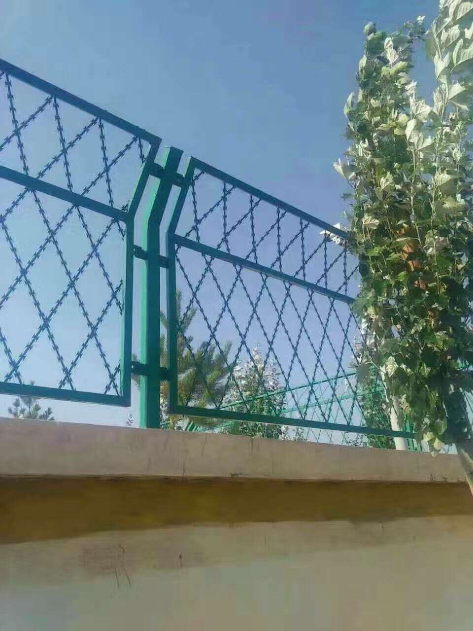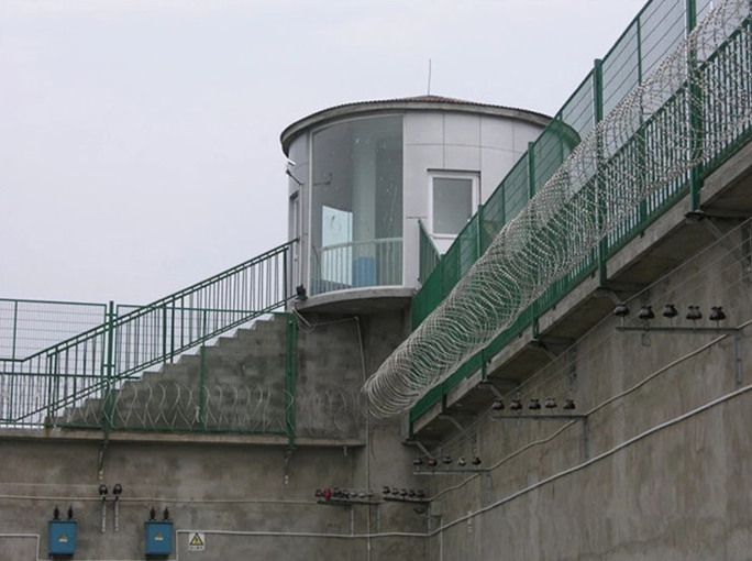 還有一些地方則采用刺繩圍欄,立柱和上面講的一樣,但是采用的是刺繩或者刀片刺網的形式。但一般用于監護部門。下面用圖片來表示更能一目了然。監獄護欄網用作圍墻增高網式,樣式一般上班要就刀刺滾籠,圍網也要求的比一般的要防攀爬,下邊慕源監獄護欄網【林霞】15075898878帶大家看看各種樣式監獄護欄網的圍墻增高網。