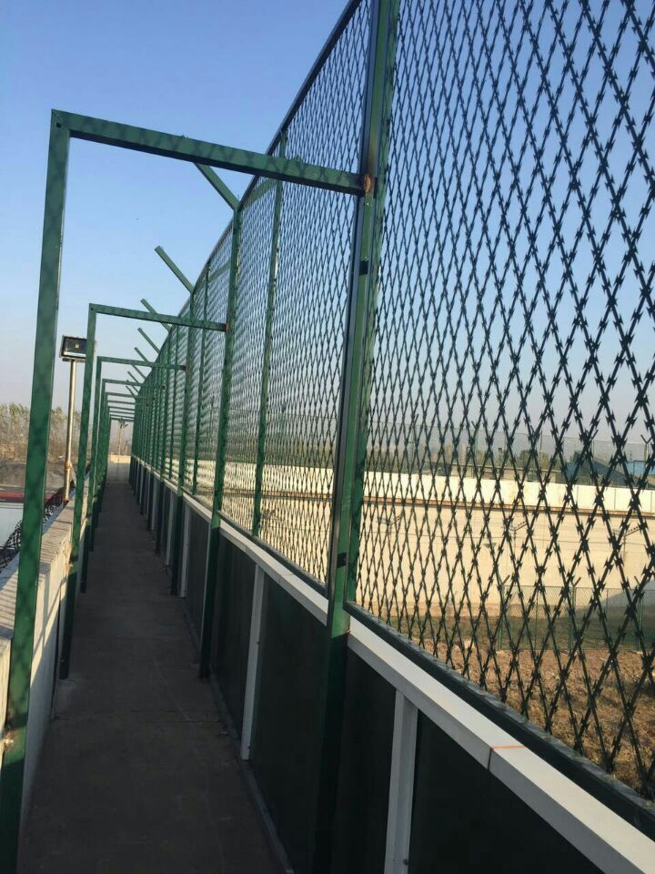 定制看守所鋼網(wǎng)墻、看守所刀刺片鋼網(wǎng)墻、V型支架鋼網(wǎng)墻,鋼網(wǎng)墻又稱(chēng)護(hù)欄網(wǎng)或刀片刺網(wǎng), 主要是采用高強(qiáng)度的刀片刺網(wǎng)與普通防護(hù)網(wǎng)的結(jié)合,由V型支架立拄,加強(qiáng)型焊接片網(wǎng),安全防盜連接件和刀片刺網(wǎng)組成。刀片刺網(wǎng)是一種新型防護(hù)網(wǎng),由銳利尖角鍍鋅鋼板或不銹鋼薄板做刀片,鋼絲做芯線組合而成的防護(hù)器材。