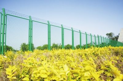 圍網基礎頂標高復核→在基礎頂預留孔標高調試→安裝立柱;對應間距安裝網片;網片安裝完成;標高復核(滿足設計要求)。